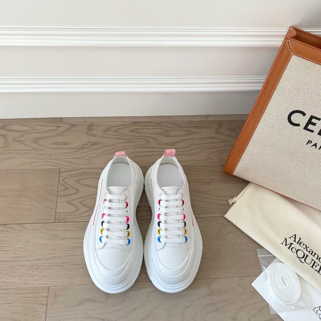 Alexander McQuee* Classic canvas thick-soled Dad shoes God-like appearance level, a versatile streetwear style! The overall look is very layered, with an invisible increase of 4CM. Original 3D stereoscopic printing and original computerized engraving lines, produced by a large factory in Dongguan. They cannot be compared with those produced by ordinary workshops. Welcome to compare The high-quality canvas is paired with a multi-layer TPU outsole. It may look bulky, but in fact, the outsole is soft, lightweight and can bounce back freely. Original genuine full set packaging + shopping bag Men and women, ?Size: 35-44 (40 for women, 45 for men, no return or exchange)
