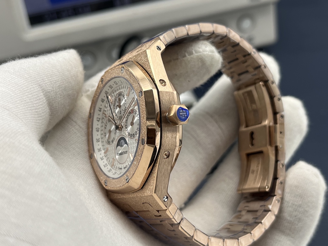 AP Audemars Piguet Royal Oak Frost Gold Version! 1 ? 41MM in diameter, King of steel "Audemars Piguet 26574 series (Frost Gold custom Edition), steel band watch the most IMPORTANT BAND! 2 ?TW factory mold the original strap to make the fine brushed texture of the strap and not sharp to cut the hand, the thickness and joints of the strap are the same as the original foot, with meticulous attention to detail. The strap of the watch features a movement buffer design at the connection point of the crown that is consistent with the genuine product, making it more comfortable to wear and closer to the wrist! 3 ? The design and texture of the clasp and the engraving of the clasp are exactly the same as the original. TW factory restores the original literal, workmanship and color details. Put together with the original without any flaw! 4 ? The movement is the soul of the whole watch and the key to distinguishing authenticity, a perfect copy of the original Cal.5134 movement, accurate timekeeping, details the center axis of the hands is solid center axis, consistent with the original, the hands are polished so that the hands have no burrs! 5 ? The sapphire mirror glass is treated with double-sided high transparency for better clarity. The overall Angle perfectly reflects the wire drawing process, a fusion of quality and beauty! TW Factory meticulously crafted. Welcome to appreciate!