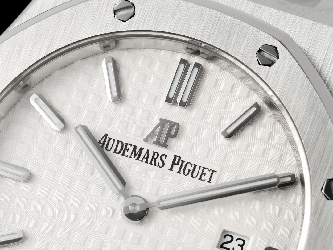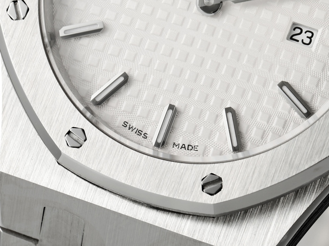 AUDEMARS PIGUET Royal Oak Series 67651OR Ladies' Quartz Watch ~ Shining debut! Goddess versatile style, sparkling and charming! The genuine product purchased through the APP is disassembled and mold-made. The entire process is CNC polished, and the pattern is checked and adjusted multiple times, with distinct edges and corners. The case diameter is 33MM. The multi-faceted bezel precisely fits the case. The bezel is fixed to the case with hexagonal screws (the bezel opening is set with exquisite Swarovski diamonds, dazzling and brilliant). The bracelet links are exquisitely and neatly arranged. The links have undergone hundreds of meticulous polishing processes, presenting a perfect texture. The folding clasp is easy to open and close and convenient to wear. The lugs of the watch are curved, which can ensure a better fit between the watch and the wrist. The dial is engraved with the "Grande Tapisserie" large checkered pattern decoration, paired with fluorescent three-dimensional hour markers and Royal oak hands. The wide hands and hour markers make reading the time simple and clear. The date display window at the three o 'clock position is shown in Arabic numerals. The wristwatch has a sealed case back, on which the English name of the Royal Oak series, "Royal Oak", is engraved. It is equipped with a Swiss F04111 quartz movement inside. Accurate timekeeping! APP production, making goddesses also very royal!