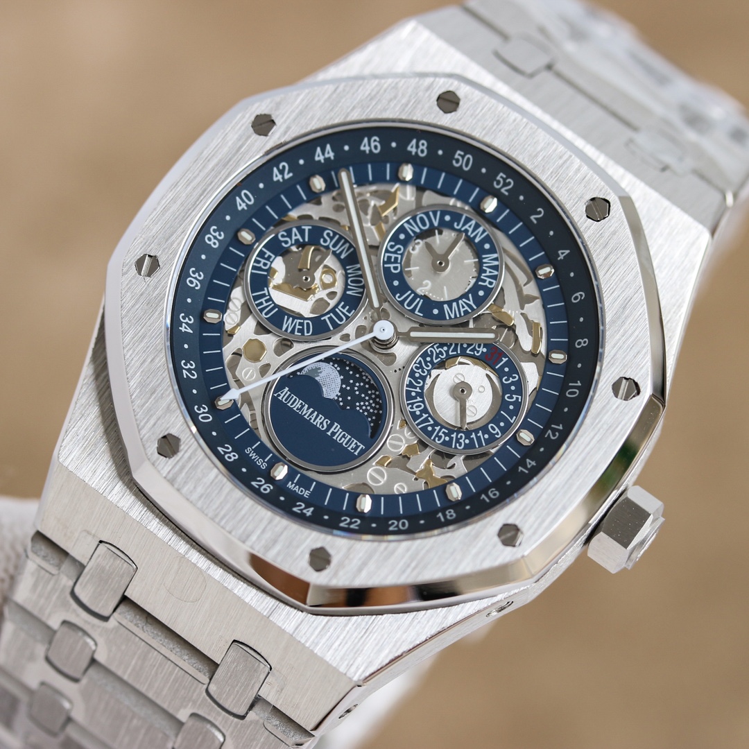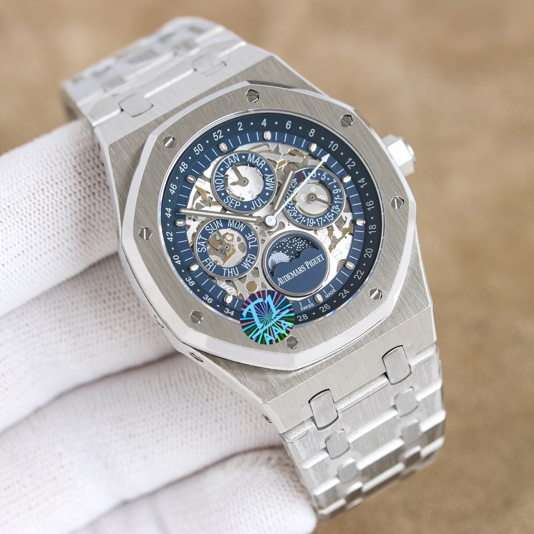 AP Audemars Piguet Royal Oak 26574ST series men's Watch! A perfect and personalized experience! 1 ? 41MM in diameter! 2 ? is equipped with a custom Cal.5134 movement, perfectly restoring the power Yes! 3 ? CALENDAR, day of the week, month, moon phase and all other functions are true FUNCTIONS can be used normally. (Optional steel belt type, rubber belt type and belt type) 3 ? The case is made of 316L stainless steel, the whole case is processed with CNC high precision, and the density matches the original. 4 ? The whole text is perfectly presented in the original color! 5 ? shell ring opening. Shell. Three-piece bottom cover set, the overall Angle perfectly reflects the brushed craftsmanship, a fusion of quality and beauty!