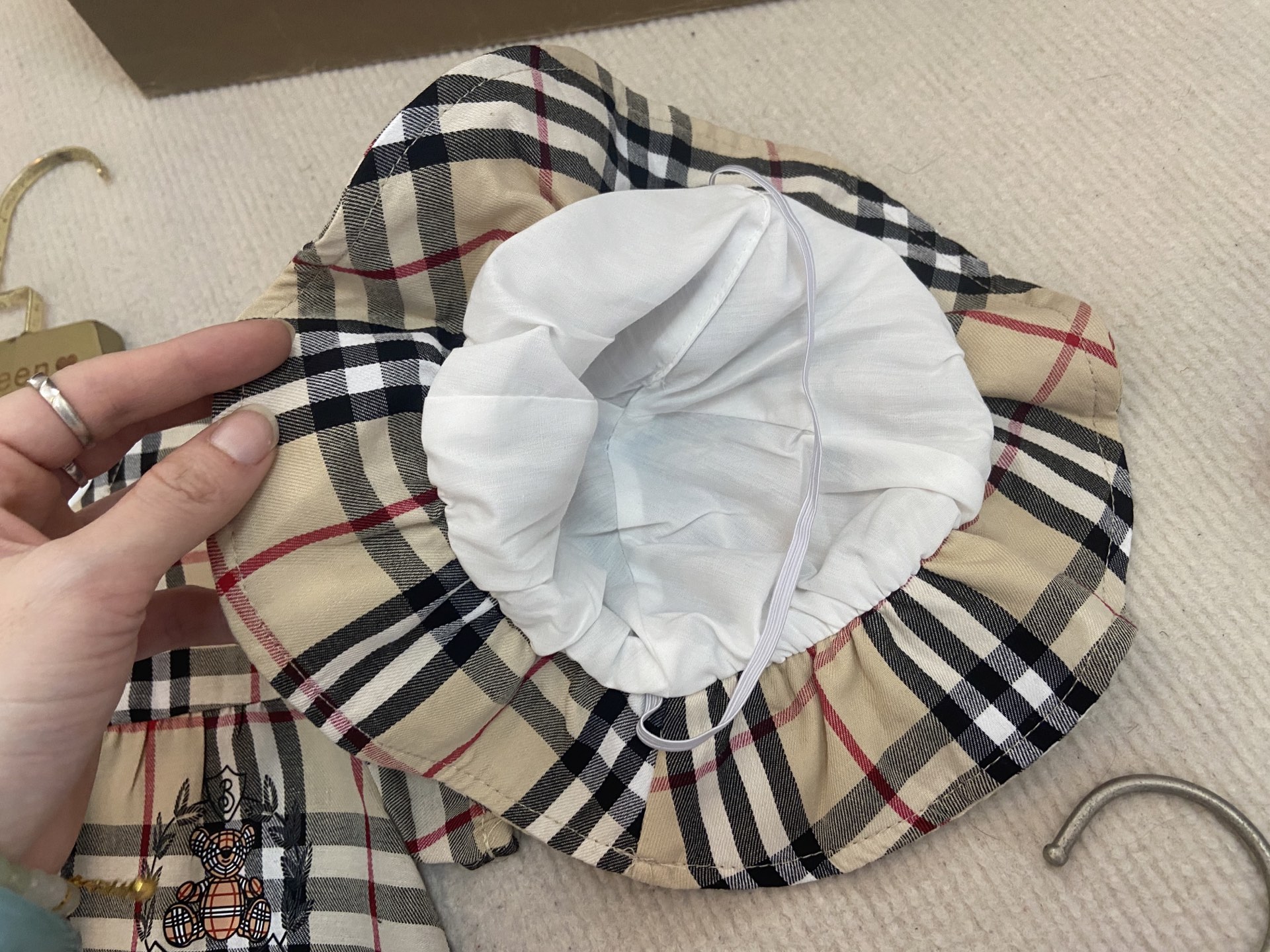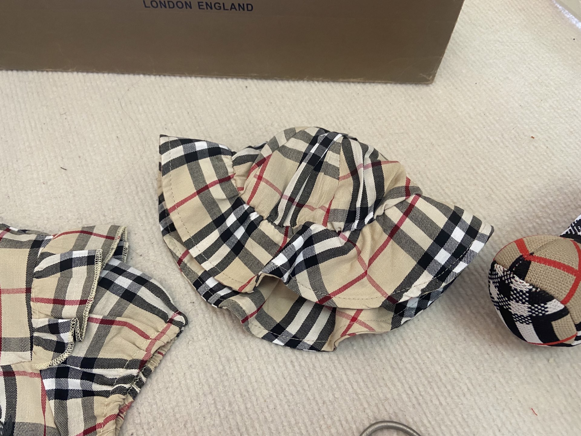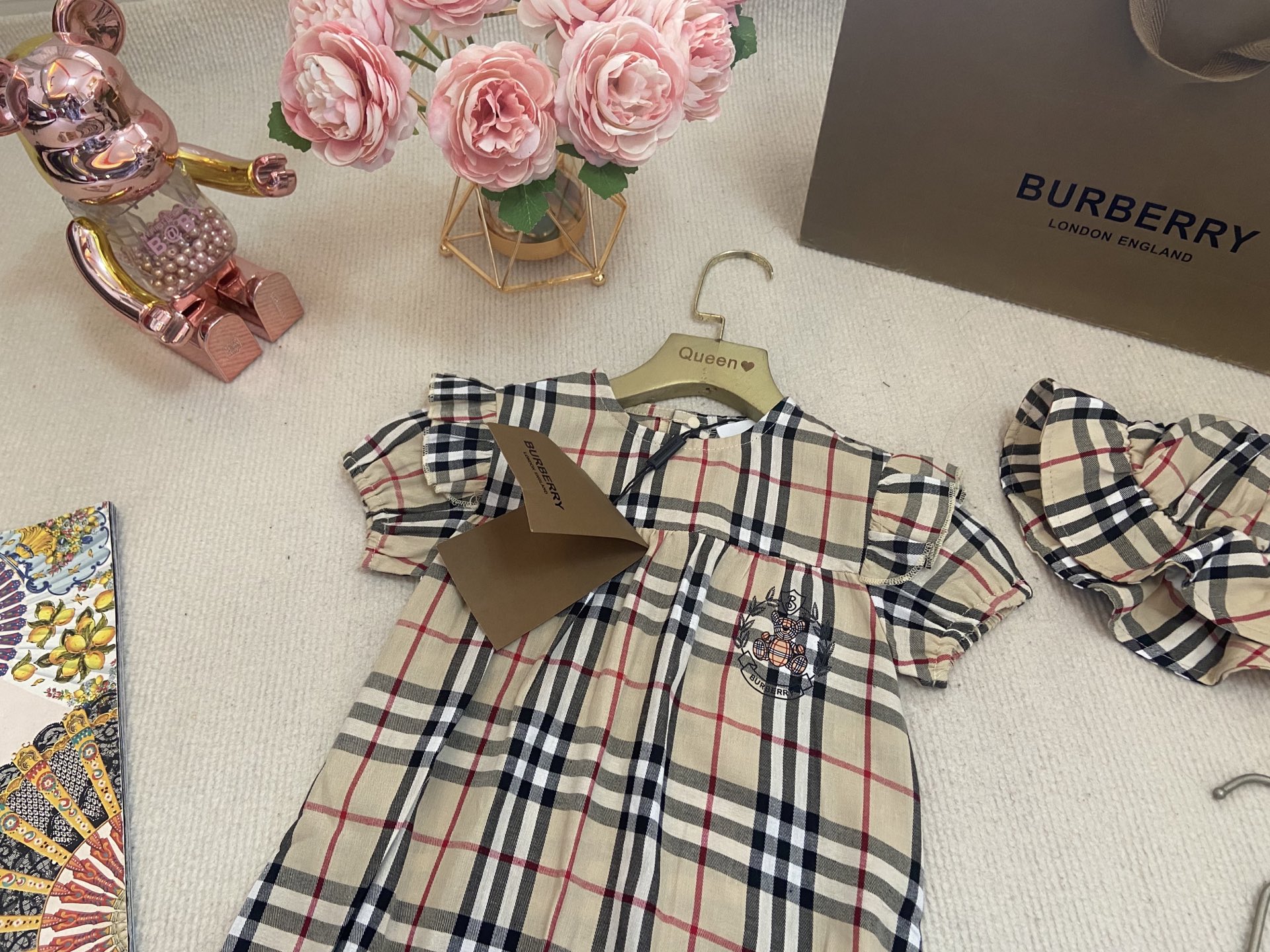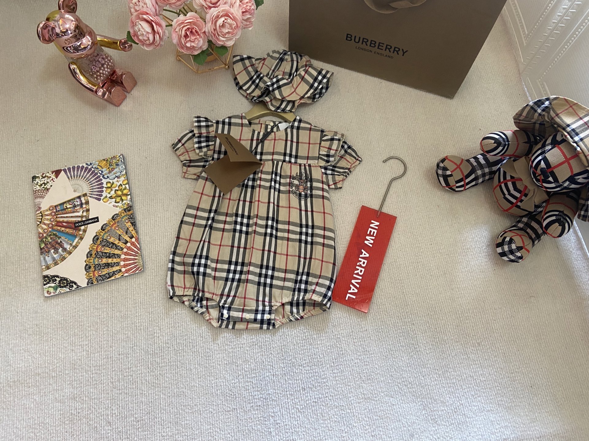 Book for one week! Burberry, high-end children's clothing, girls' harem set, fly-sleeved bag and hat, pure cotton fabric, comfortable and good-looking to wear. Code size :66-73-80-90-100cm