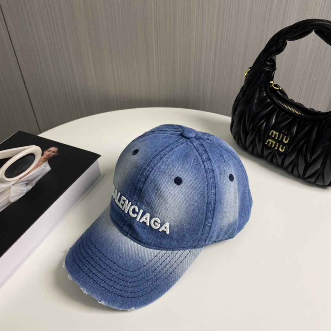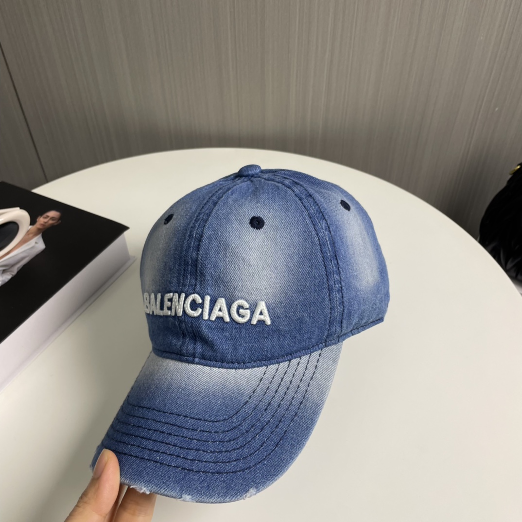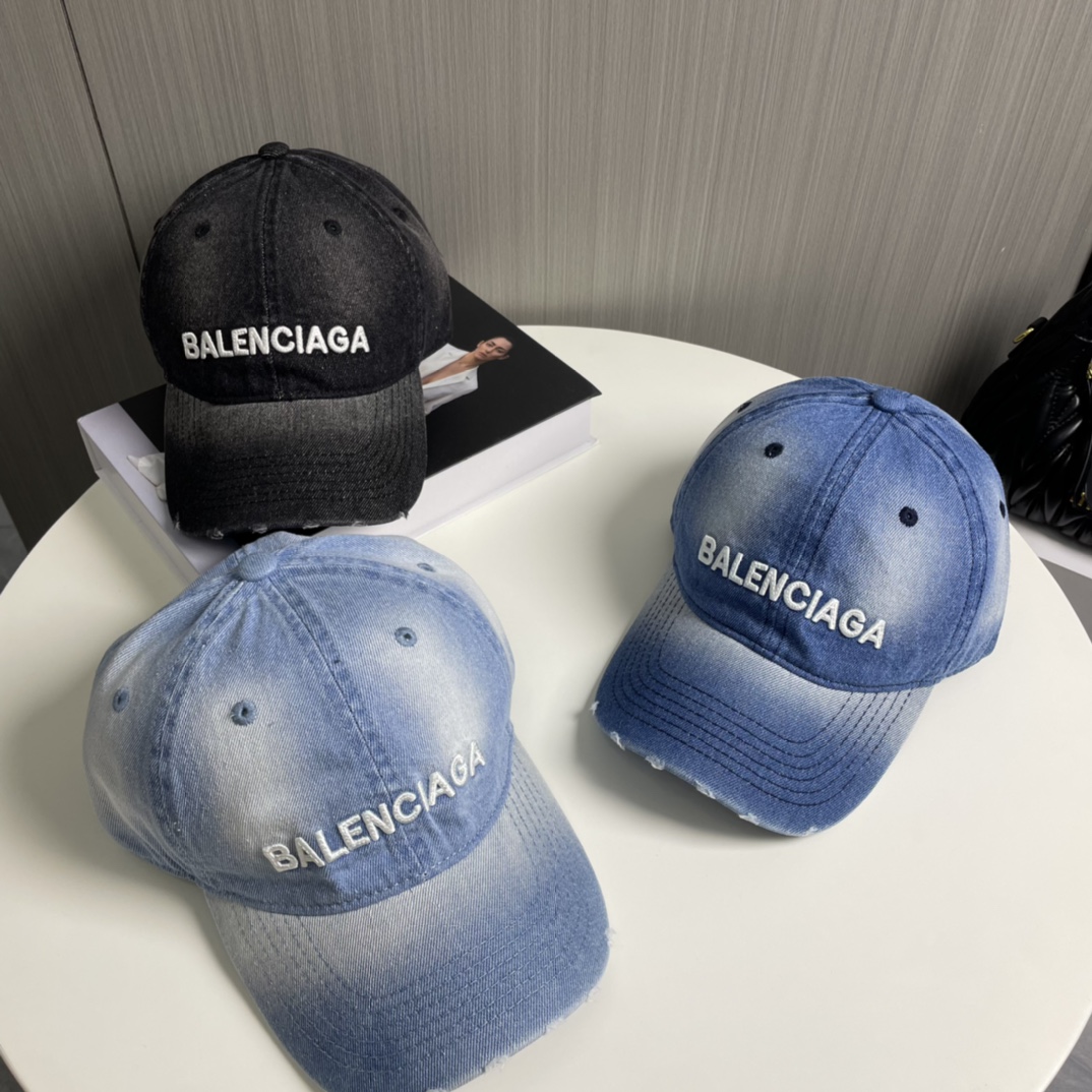 BALENCIAGA's new washed denim baseball caps come in cool color schemes, offering different styles for both men and women. The first batch is now available! A must-have for Parisian pink!
