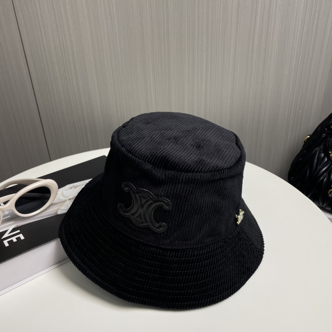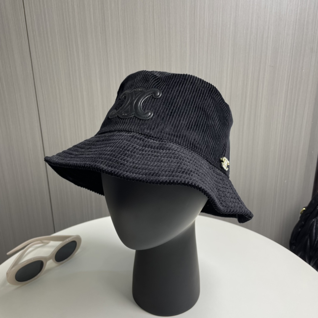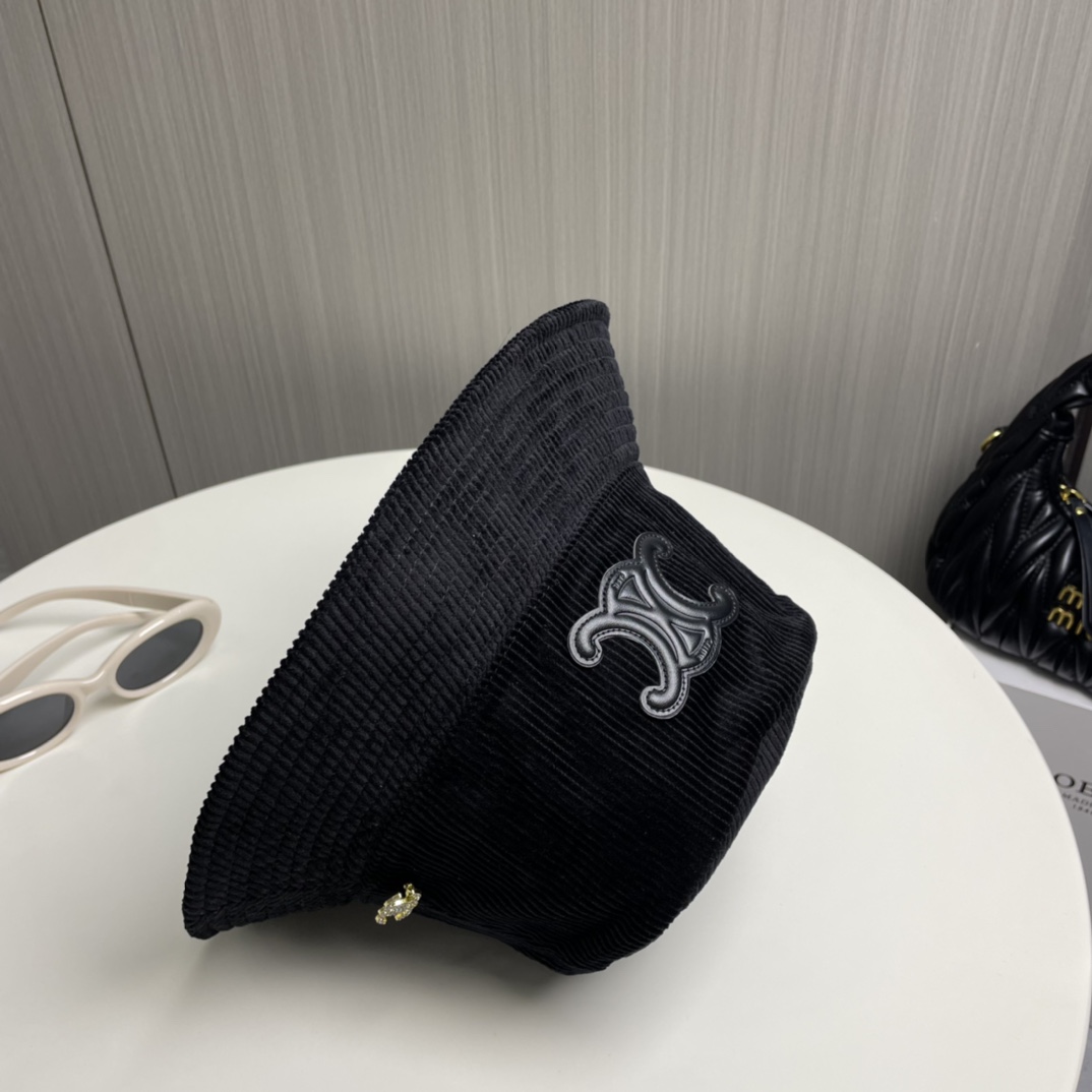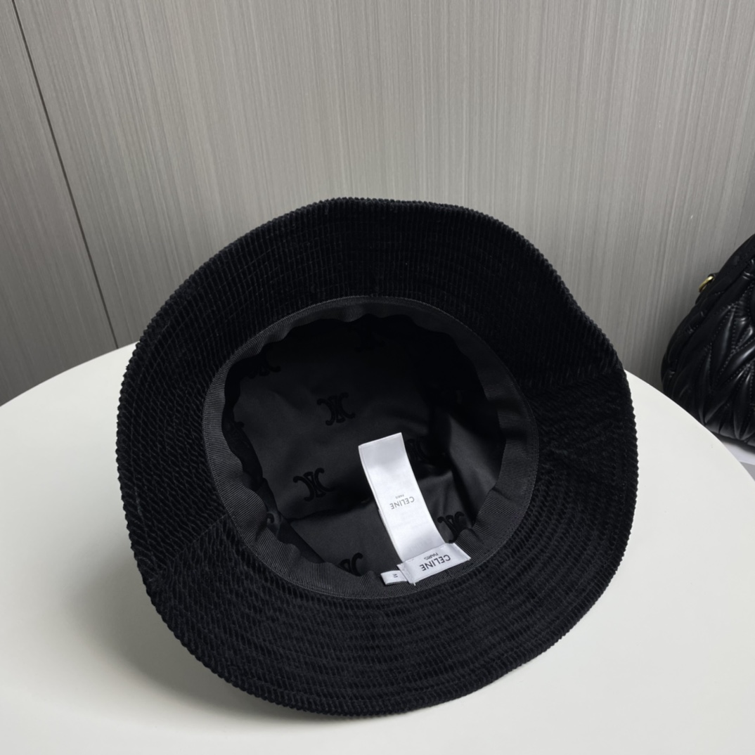 ?? CELINE high version official website latest style ?? Corduroy vertical fisherman hat for women, autumn/winter streetwear brand versatile retro trend