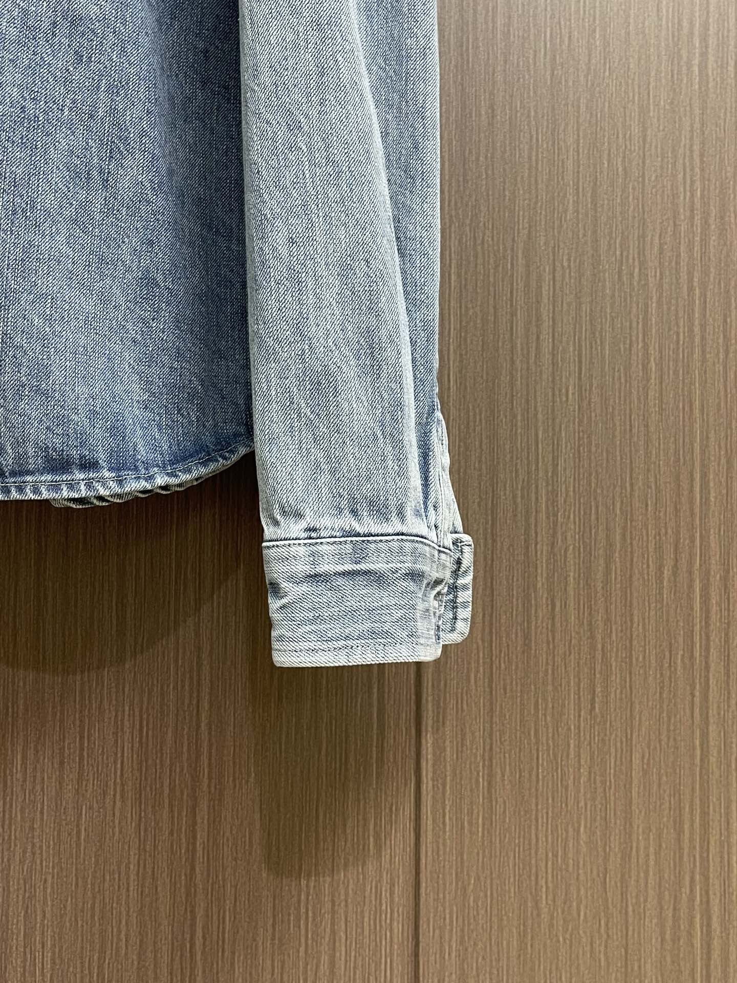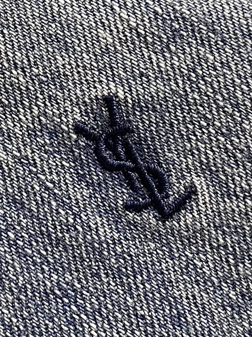 ysl SaintLaurent logo embroidered denim jacket, made of custom-made natural cotton essence denim fabric, with exquisite YSL embroidery on the chest as an embellishment, infuses the tough denim with vitality and elegance. Adopting imported machine embroidery techniques, advanced computer control systems and precise mechanical components, the YSL logo embroidery operation is realized. The corresponding solution is specially made by stir-frying snowballs and salt, and a certain amount of dye is added. The denim material is soaked in it to absorb the solvent, then washed and dried to further fade and oxidize. Size: S-XL