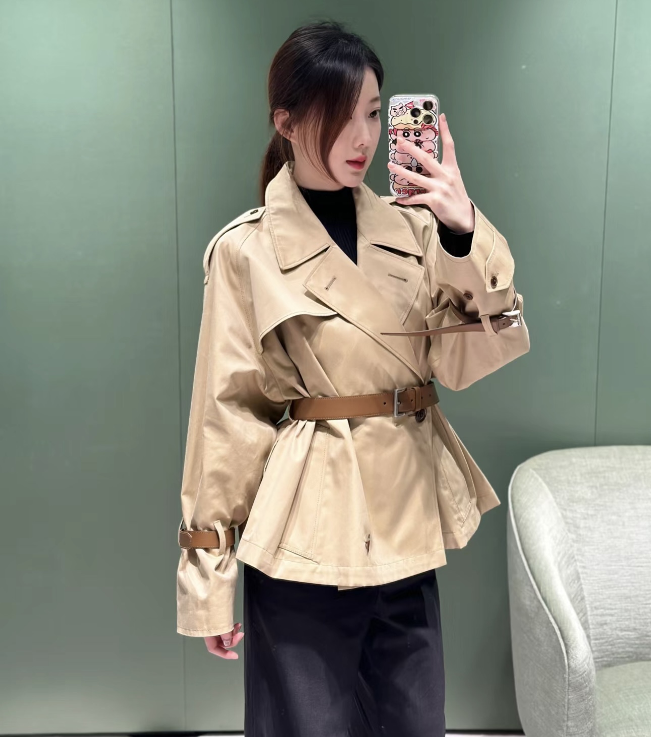 Prada/ Prada 24Fw corset short belt Trench coat (Women's style) Wearing effect #