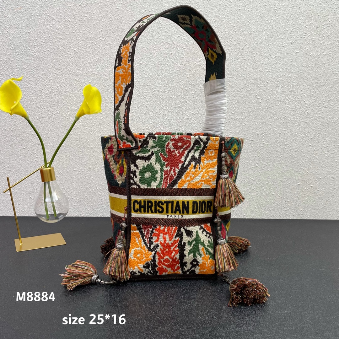 The original single Dio*r new D-bubble fringed bucket bag has arrived. The entire body is decorated with multi-shaped striped embroidery to create a hollowed-out effect. It is paired with the Christian Dior logo. The wide shoulder strap, handcrafted plush ball, and retro silver metal make it even more noble and fashionable. It can be carried by hand or over the shoulder. M8884# size: 16*25*16