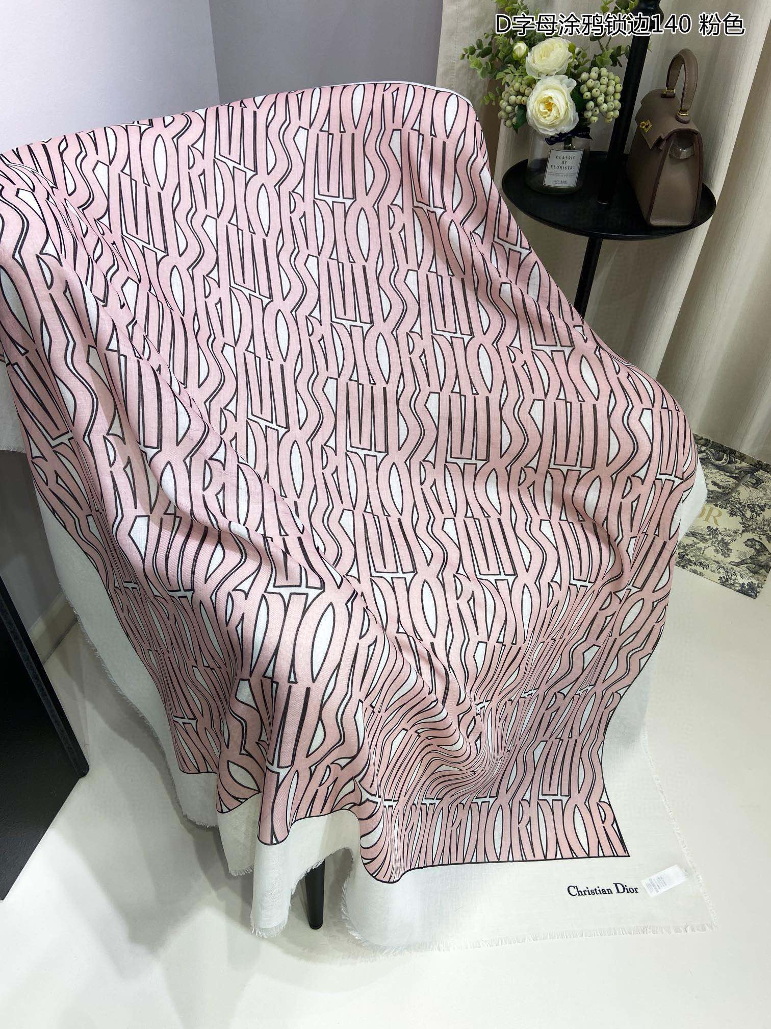 Bestselling ????Dior's latest counter signature [D letter graffiti hemlock 140] ?? Styles that go well with both vacation and daily wear ?? Order private stream] I want to go on vacation at first glance ? ? USUALLY THE OUTFIT IS ALSO VERY GOOD to match, THE WHOLE PERSON WILL LOOK ENERGETIC ???? A lot of needless to say, the details of quality are CLEARLY visible, definitely PRAISE THE high specification quality ??140*140 large handkerchief, 100% silk cashmere