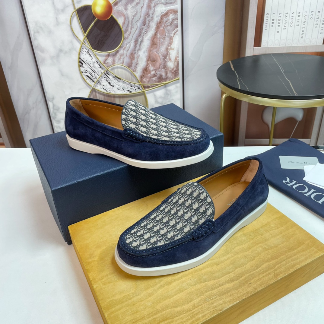 Dior DIOR Top Size: 39-44.45 Custom 2023?? New men 's casual loafers, made from imported top-grain brushed cowhide, hand-stitched with mark stitching, decorated with brand' s classic jacquard canvas on the upper, and the original rubber sole is soft and comfortable.