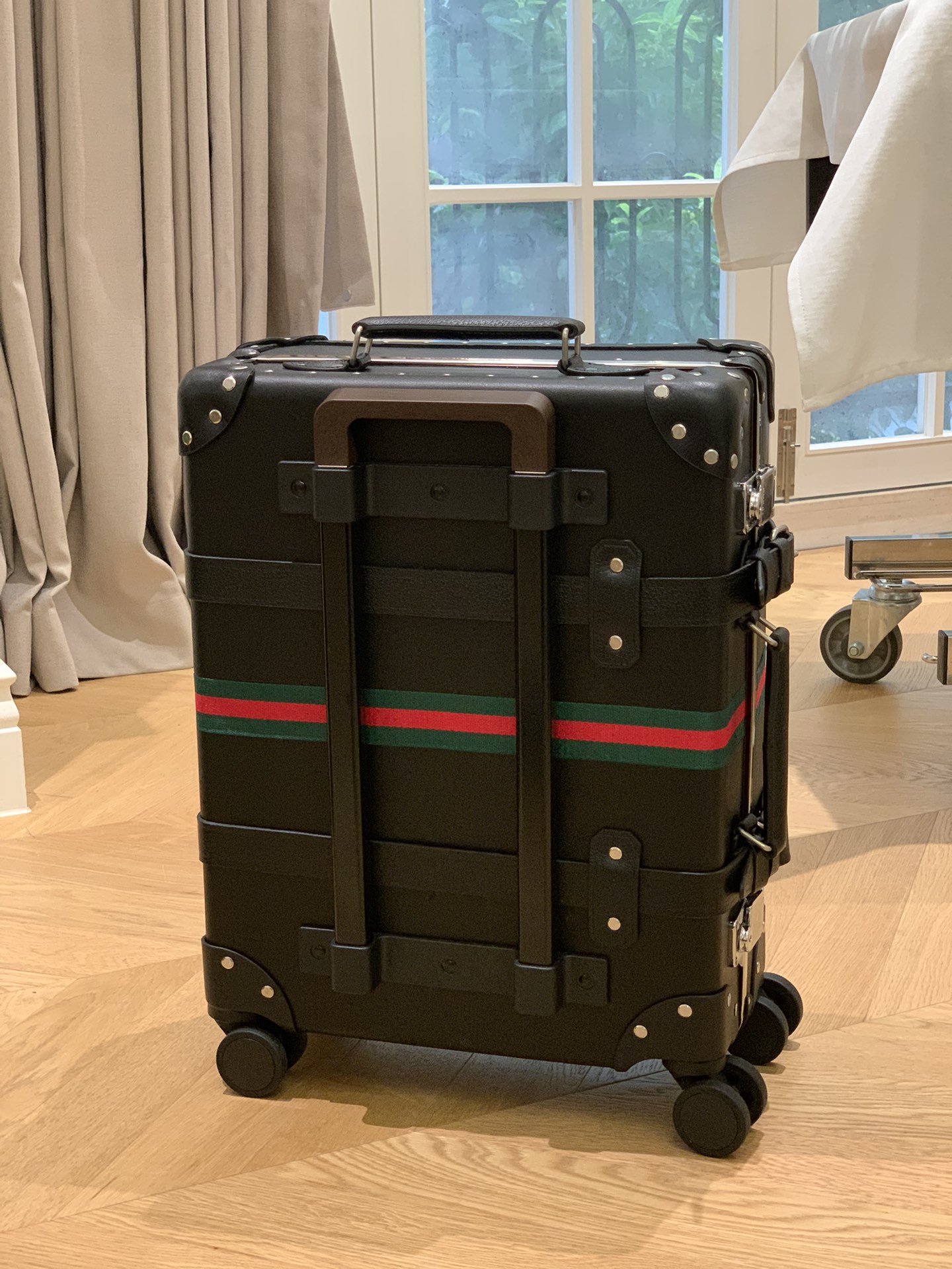 The Globe-Trotter series GG trolley case is a collaboration between GUCCi and the British royal travel case brand Globe-Trotter. It's a hit show style and a "small black room" style, and it also belongs to the counter Hidden list series Let's first talk about this century-old travel case brand. With its own unique case-making technology, the cases it creates are not only waterproof and durable, but each one also has a strong flavor The British OLD SCHOOL style, this box is no exception: The handle and the eight legs of the box are all wrapped with top-quality British cowhide and fixed with strict stitching. Whether it is the leather or the lining, everything is cut by hand by artisans 99 The iconic GG pattern of GUCCi and the bamboo handle are both integrated into it, made of rice The GG Supreme canvas in color and ebony to brown leather trim, combined with the square and square shape, has a strong retro atmosphere. This trolley case has a strong retro flavor and seems like a work of art. It can not only be used on a plane but also serve as a background for taking photos around the world during a trip. It can also store all kinds of travel supplies without any problem. The inner capacity is very large. So it is a suitcase that combines good looks, large capacity and durability!