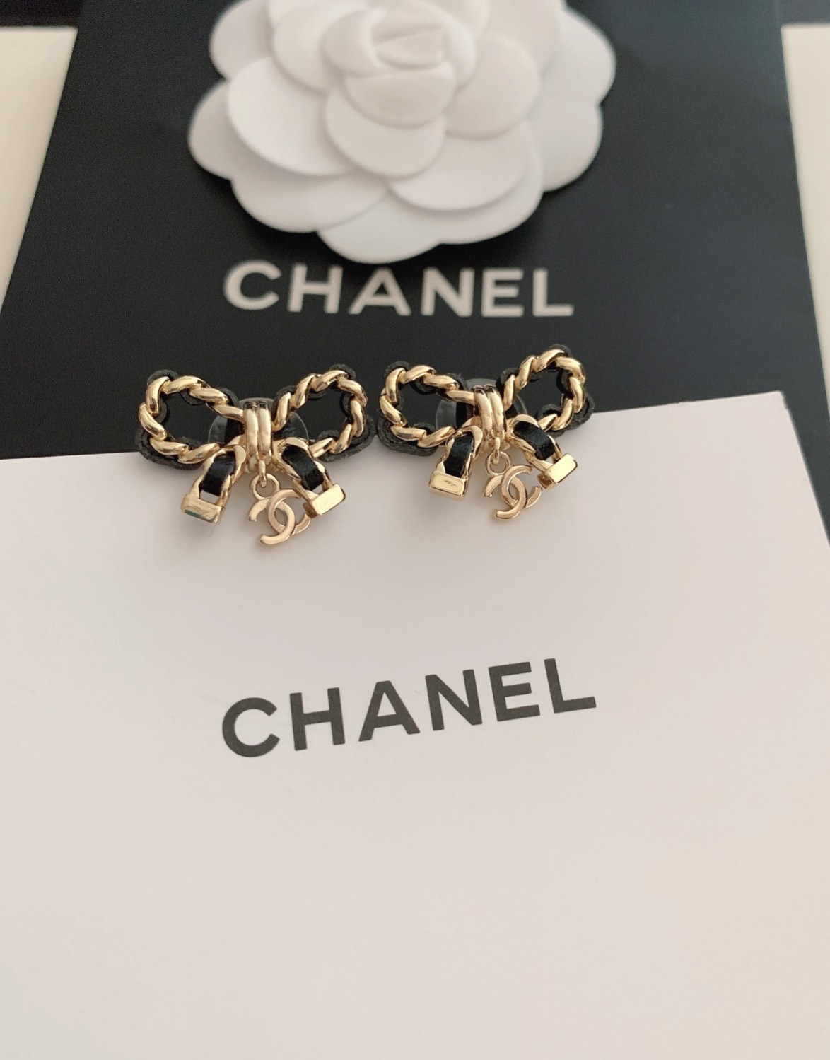 New ch*nel ?? bow ?? stud earrings made of uniform ZP brass 060080Earrings/Ear studs