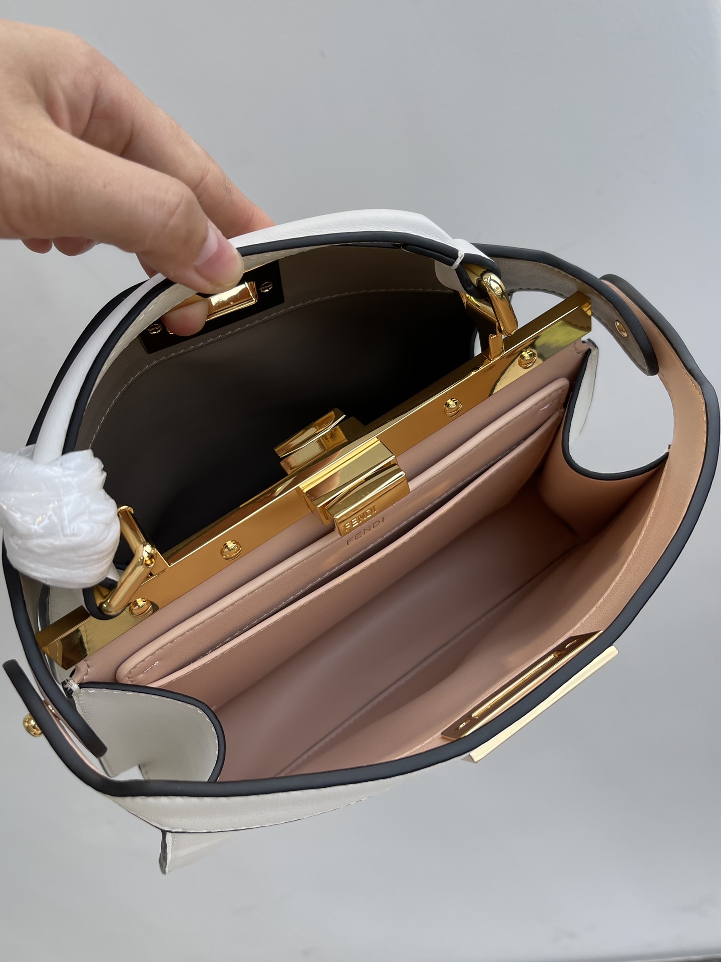 Fendi's classic peekaboo handbag is a single-shoulder crossbody bag. The bag body is made of imported calfskin, with clear leather grain and a soft and fine touch. The touch is very comfortable and this kind of leather is very durable. It has a gain and loss partition layer, with a hard board partition in the middle. The space is very large and can accommodate daily needs. Both sides are decorated with golden trim and buttonholes. It features a twist-lock opening and closing design, metal parts and Fendi engraved logos. The inner lining is made of all sheepskin and comes with two inner pocket bags. The capacity is considerable and can meet your carrying needs when you go out. Single handle and adjustable golden metal chain, detachable cowhide shoulder strap. It looks very nice when carried by hand, on one shoulder or slung diagonally. The bottom is also equipped with brand-exclusive bottom nails, which can provide better protection for the bottom leather. As one of Fendi's classic styles, the bag design is simple and classic, with smooth and elegant lines on the body that are pleasing to the eye. When it comes to fashion, it's the one that comes to mind. Owning a bag that can handle all kinds of occasions is really important. It's elegant and grand for commuting and professional wear, and even more beautiful and cool for daily casual wear. The image can be freely transformed from salty to sweet. This bag also comes in a variety of colors, and each color is very nice. Each has its own unique charm. This is a bag that is highly favored and pursued by many celebrities. It is a very practical and versatile style. Don't miss out, kids. Come and buy it. If you buy it, buy it. Size: 27x21x9.5 cm nNumber: 17689,050