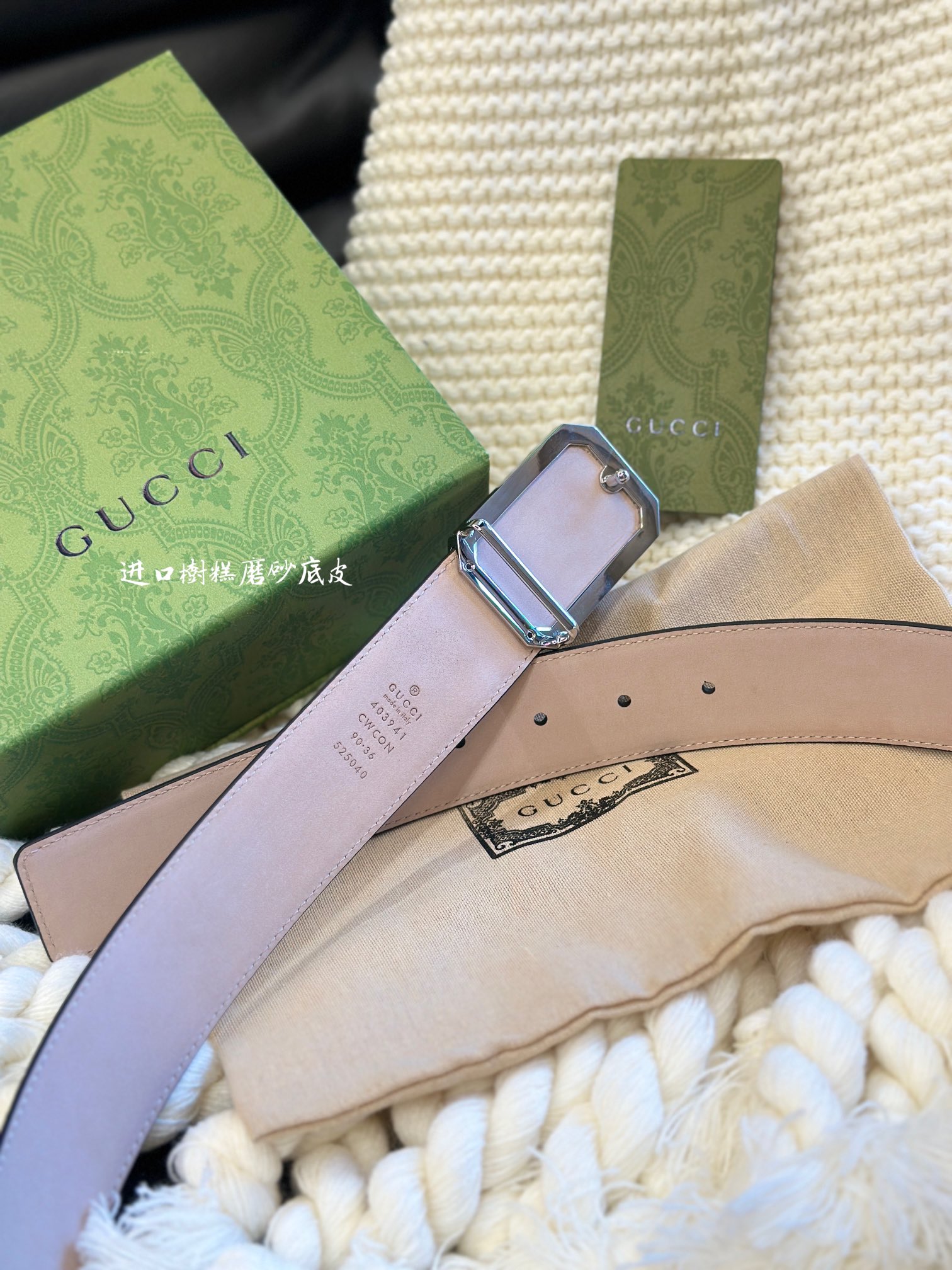 Gucci classic top layer G-flower original leather strap with a width of 4.0cm and a hollowed-out square buckle