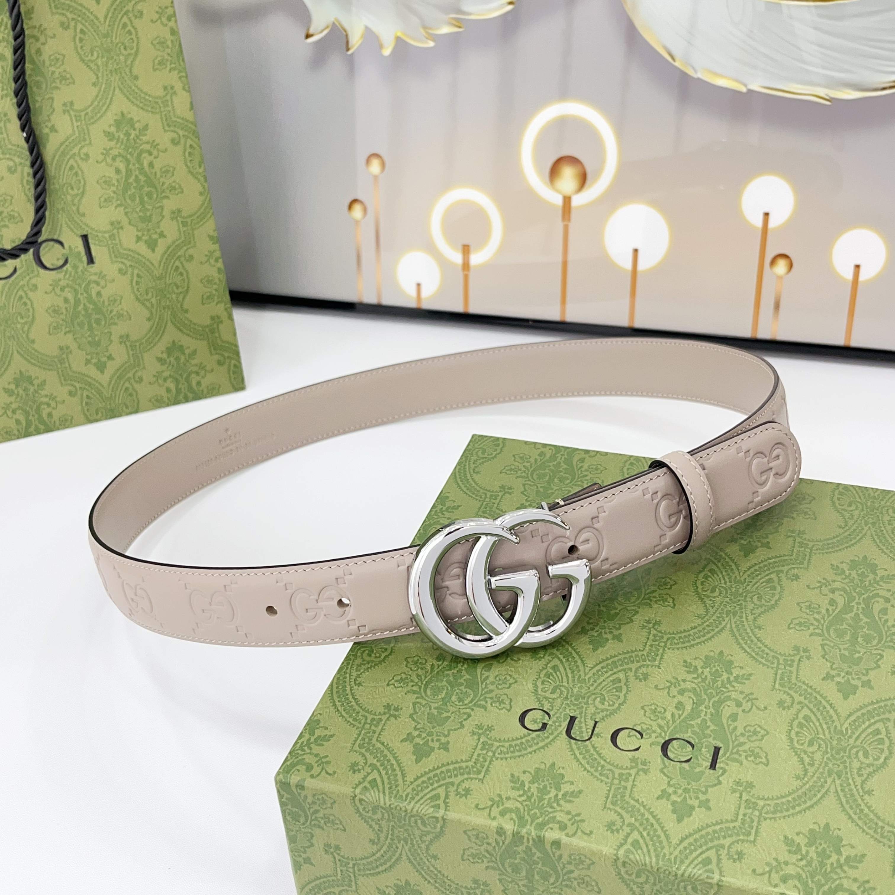 The Gucci belt is 3.0cm wide Double-sided top-grain calfskin made from original factory leather, with a classic embossed surface and copper buckles, is fashionable and versatile Code number: 75 80 85 90 95 100 105 110