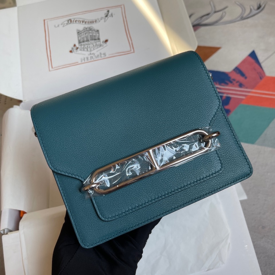Pig nose bag ?? Roulis 19cm Picture Prus green gold and silver buckle in stock Evercolor leather ? Imported beeswax thread ? all steel hardware ? LOW-KEY ~ EASY ~ convenient ~ Simple and versatile style ?? crossbody ~ Hand ~ Shoulder ~ Color update in progress...