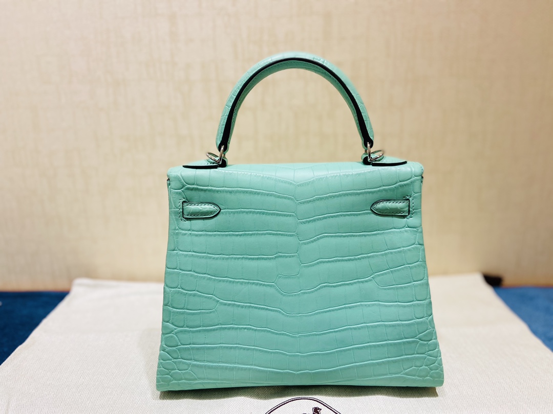 Kelly 25cm Silver button (Gold) Crocodile ?? Niloticus 6U Mint green vert deau Top handmade