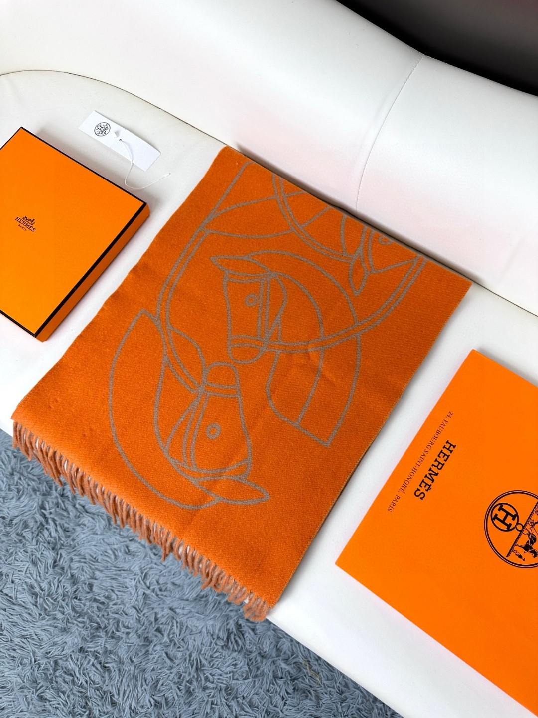 This new Hermes scarf features a delicate color-blocking jacquard weaving, presenting the Entrelacs Equestres horse head pattern designed by Geoff McFetridge. The size is 40*195CM