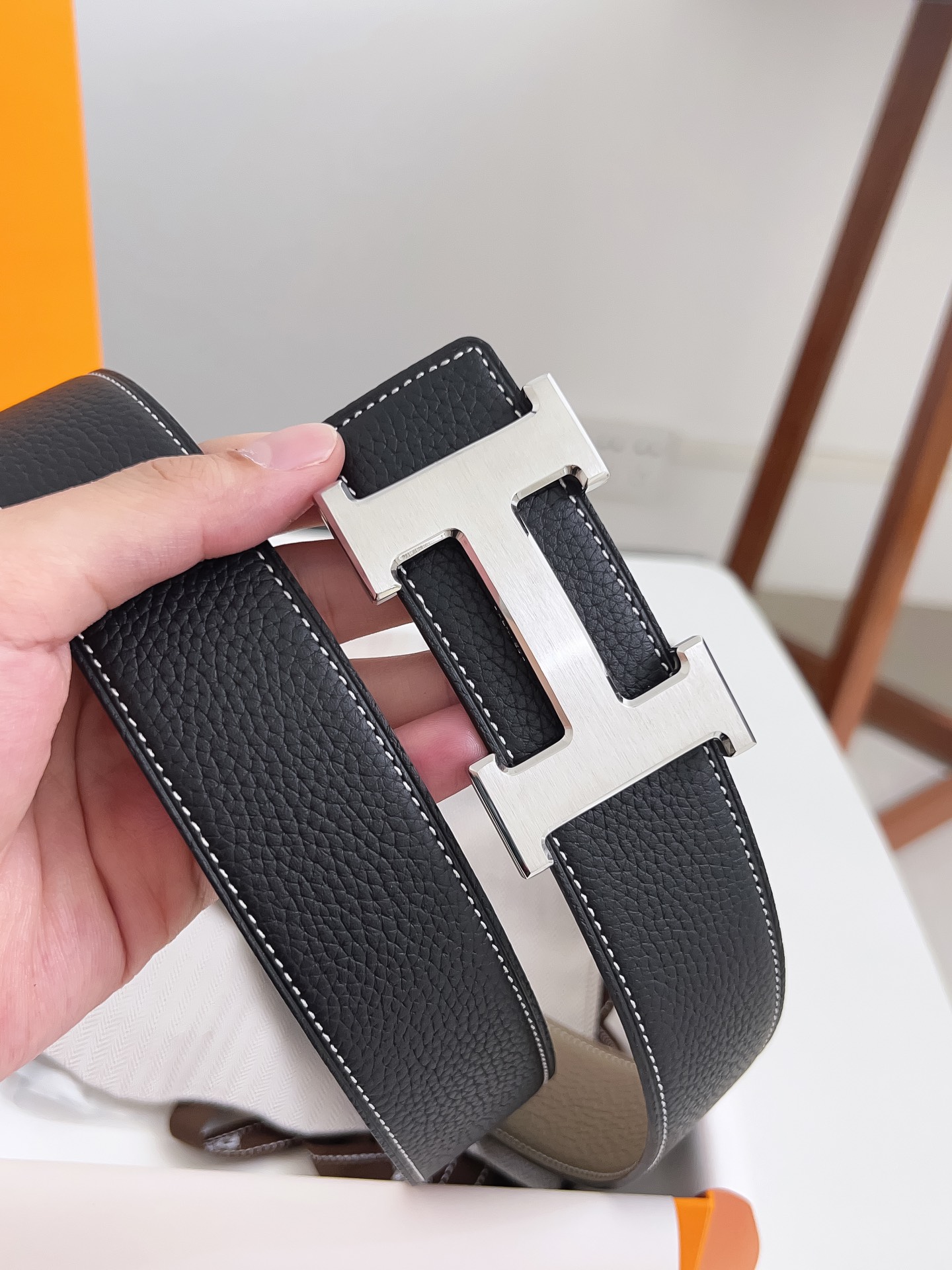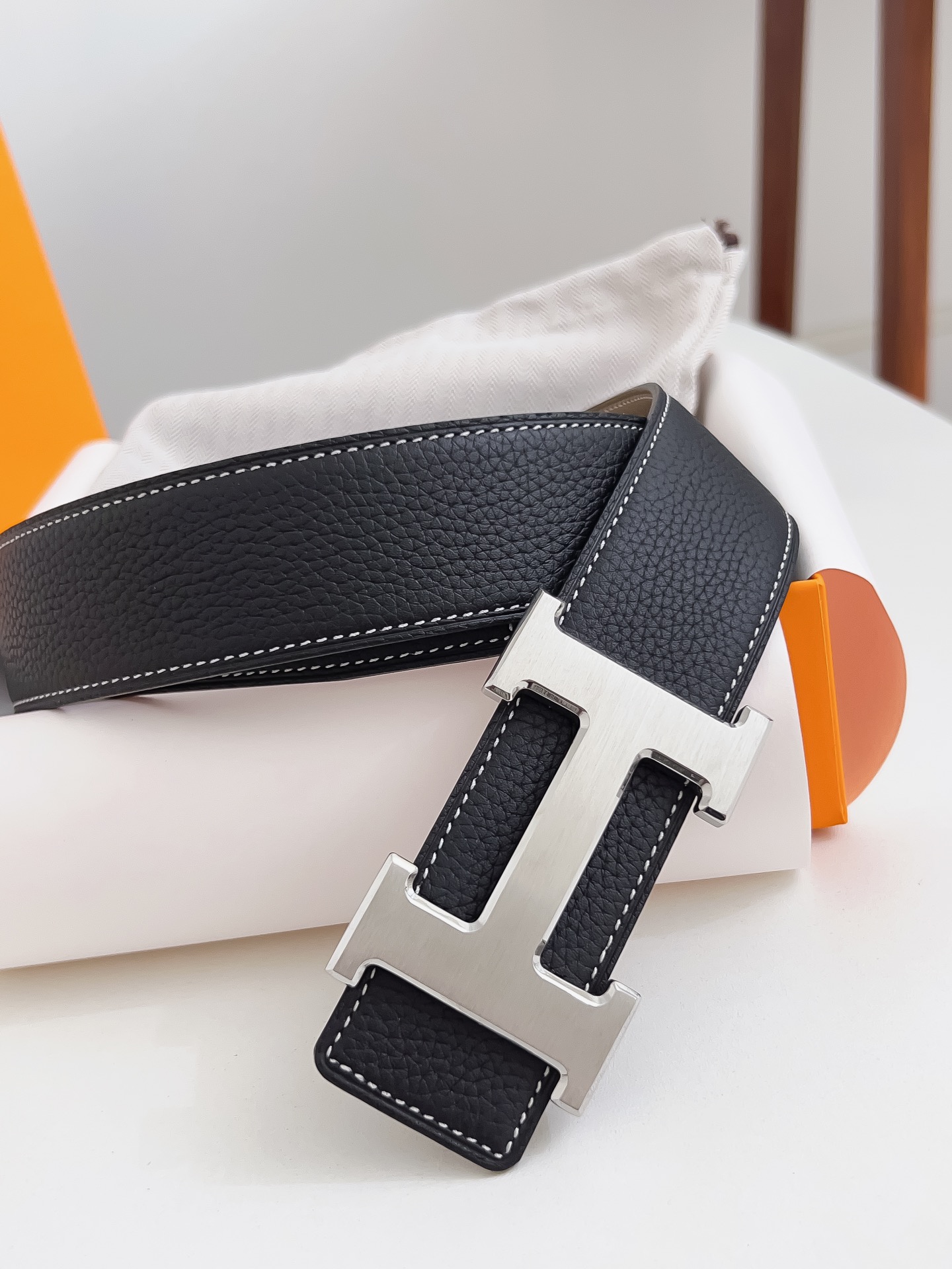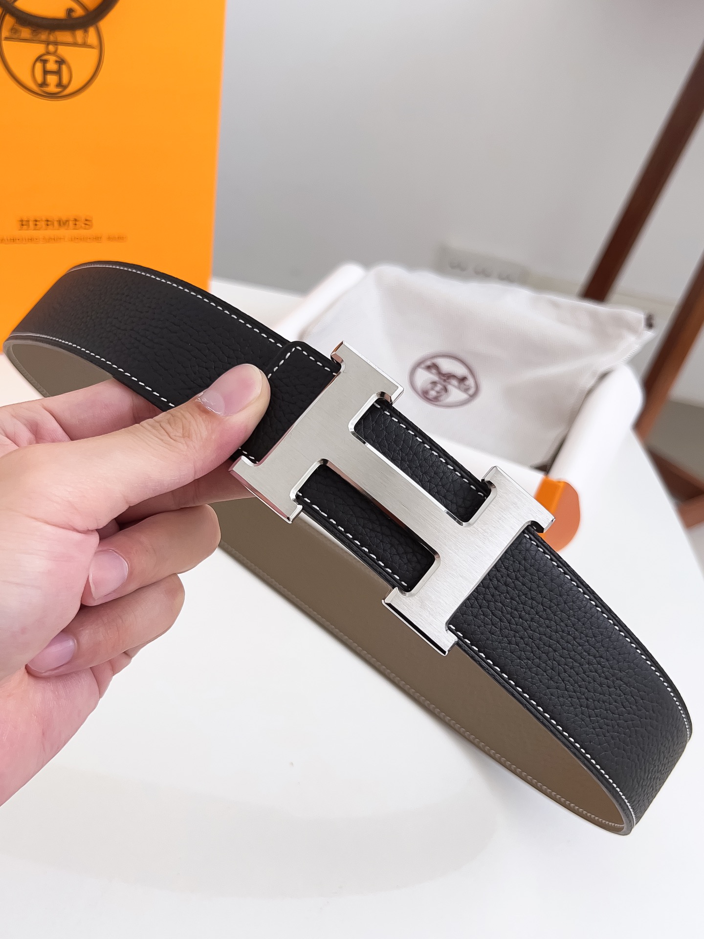 Original Hermes item, width 3.8cm Sg Double-sided top layer togo lychee grain, soft leather material. It can be used on both sides, with fine workmanship and excellent quality. Buckle: Stainless steel buckle (gold and silver)