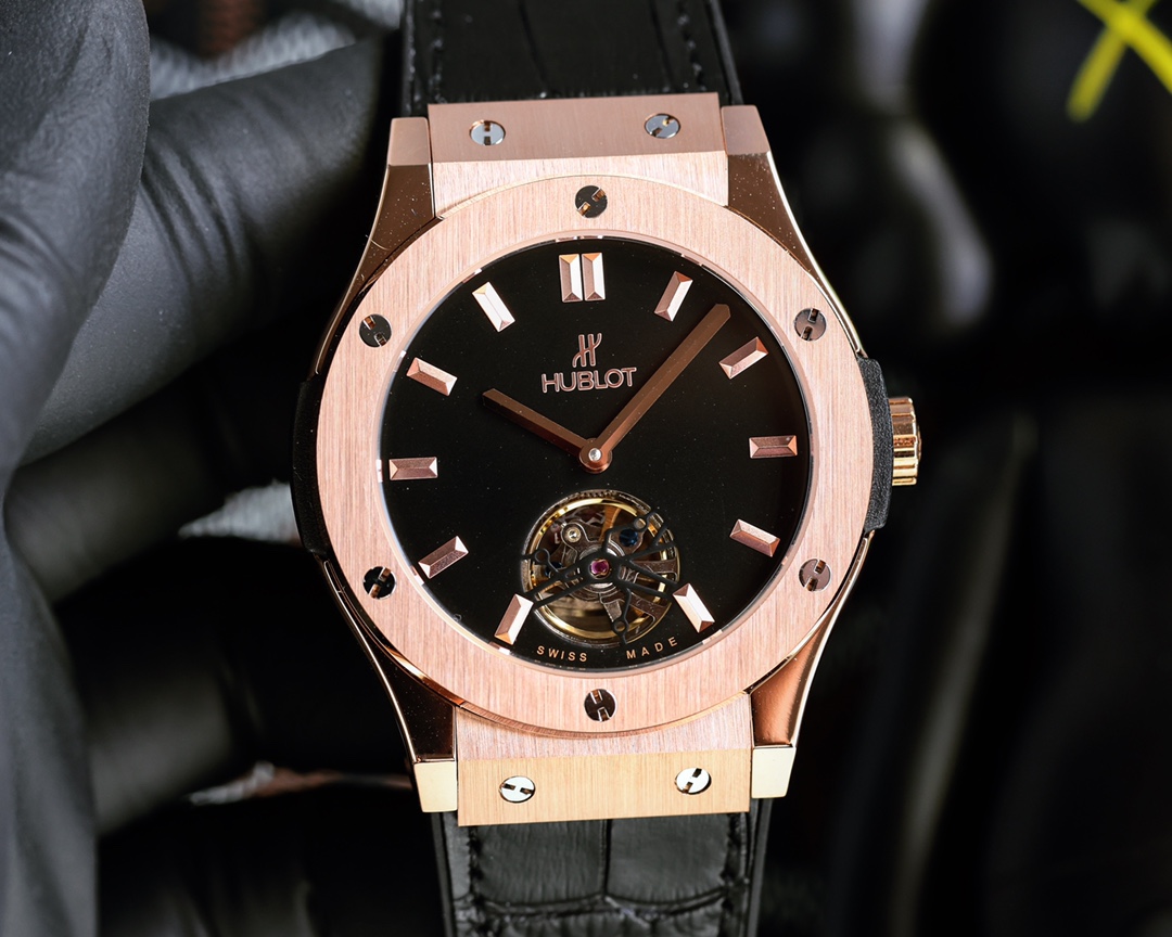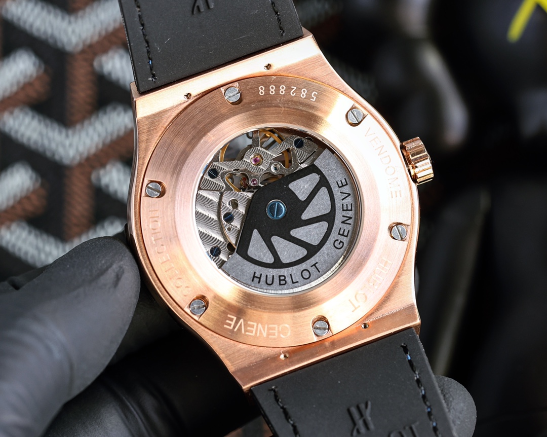?? HUBLOT blue sapphire glass 45mm*13mm top layer cowhide strap Original buckle Automatic mechanical movement The strong metallic coolness always gives you a visual impact