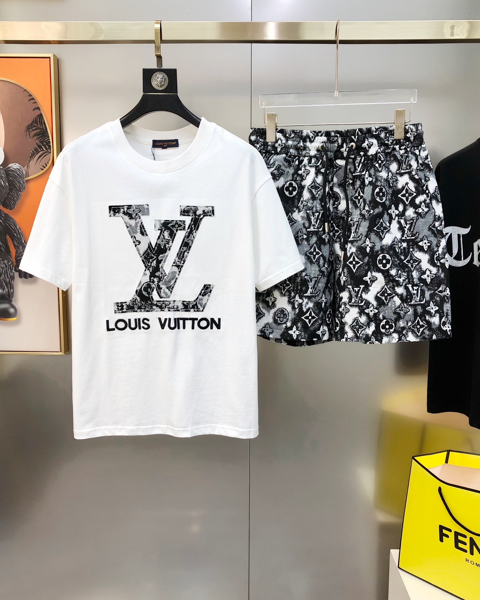 LV Louis Vuitton Spring/Summer 2025 new single men's casual set short sleeves and shorts for sale without disassembly ?? The official website is also selling the big hit ?? ? high version fashionable and versatile ? three-dimensional embroidered letter patchwork logo pattern design made of original imported pure cotton fabric pants jacquard process denim pure cotton fabric soft and delicate hand feel comfortable to wear Original imported engraved hardware accessories for customers, fine workmanship by the OEM factory, smooth lines, exquisite craftsmanship, superb style, very fashionable and cool when worn ?? highly recommended! Counter size: M-3XL (The largest size can wear about 190 pounds. Please report your height and weight when placing an order.) Shipped the next day in black and white