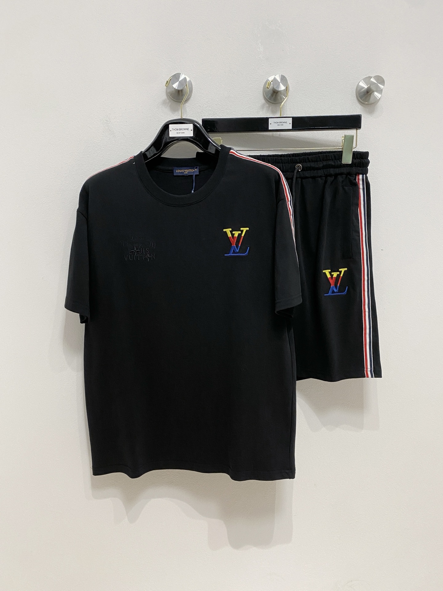 LV ???? high-end custom 2025 spring/summer new collection launch counter the latest short sleeves and shorts casual set high-end custom design avant-garde fashion! The brand logo emphasizes high-end custom pure cotton fabric with meticulous craftsmanship design. Soft to the touch. Comfortable to wear. Counter level exquisite vehicle lines. The workmanship is exquisite. The wearing effect is incredibly cool! Essential items for stylish men! Size: M-3XL