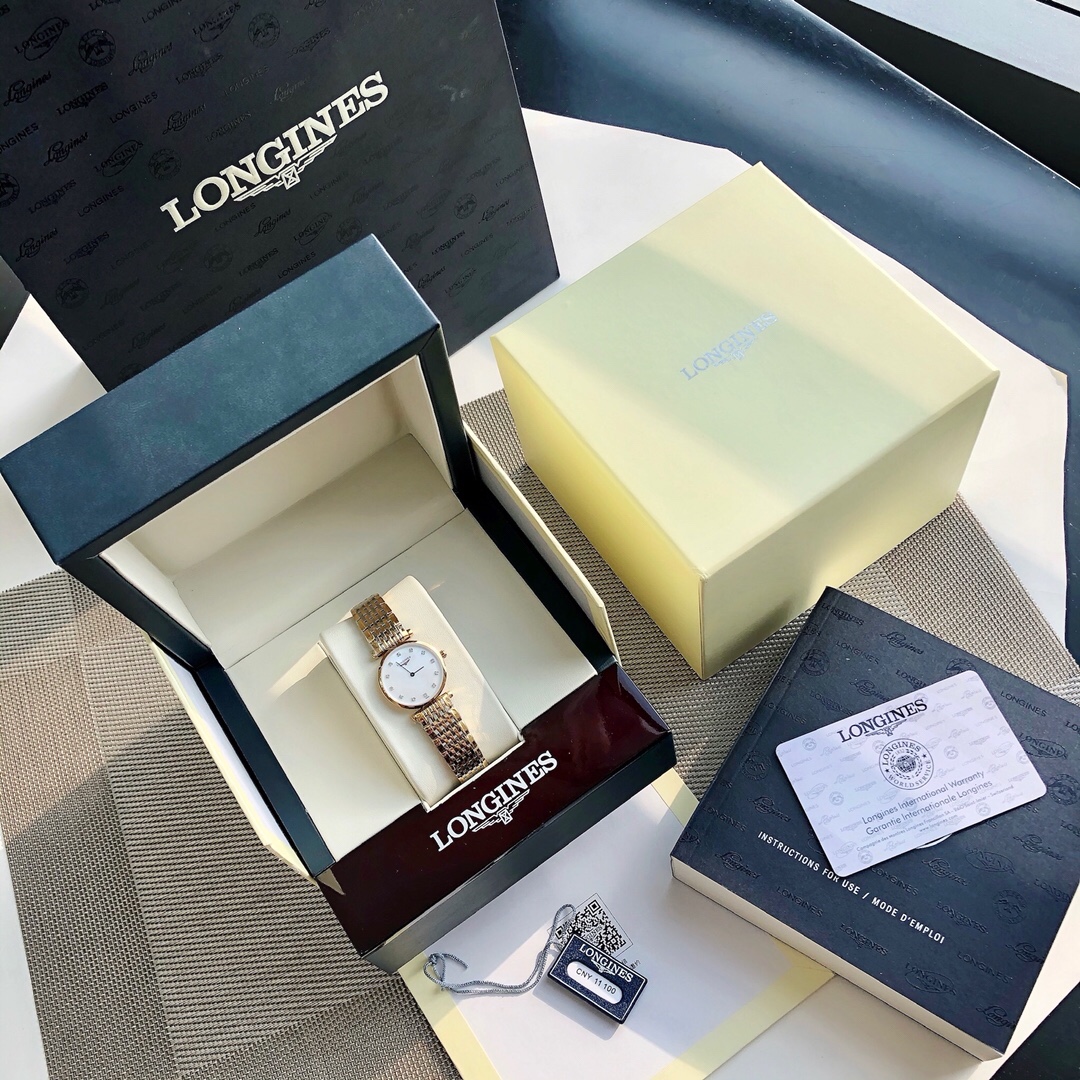 Longines Garland Women's Quartz Collection, genuine diamonds! Real diamond! Support counter inspection! The classic and timeless Longines Ultra-thin La Grande Longines series - the Winged hourglass brand's ancient aesthetic tradition is vividly displayed. The curved case highlights the signature feature of the ultra-thin design. The special mother-of-pearl dial is adorned with genuine diamond hour markers, exuding a simple and refined charm. The 24mm dial adds a touch of feminine grace. The original Swiss Cal. The L209 quartz movement features an anti-wear sapphire crystal, a three-fold safety clasp and a push-button opening mechanism. The black hands make the entire dial more exquisite, highlighting the essence of Swiss Longines watches. The mother-of-pearl dial with genuine diamonds adds a touch of luxury. The 316 stainless steel intermetallic bracelet offers a light, thin and comfortable hand feel. One watch, one code. The three codes of the watch back cover, tag and warranty card are consistent.