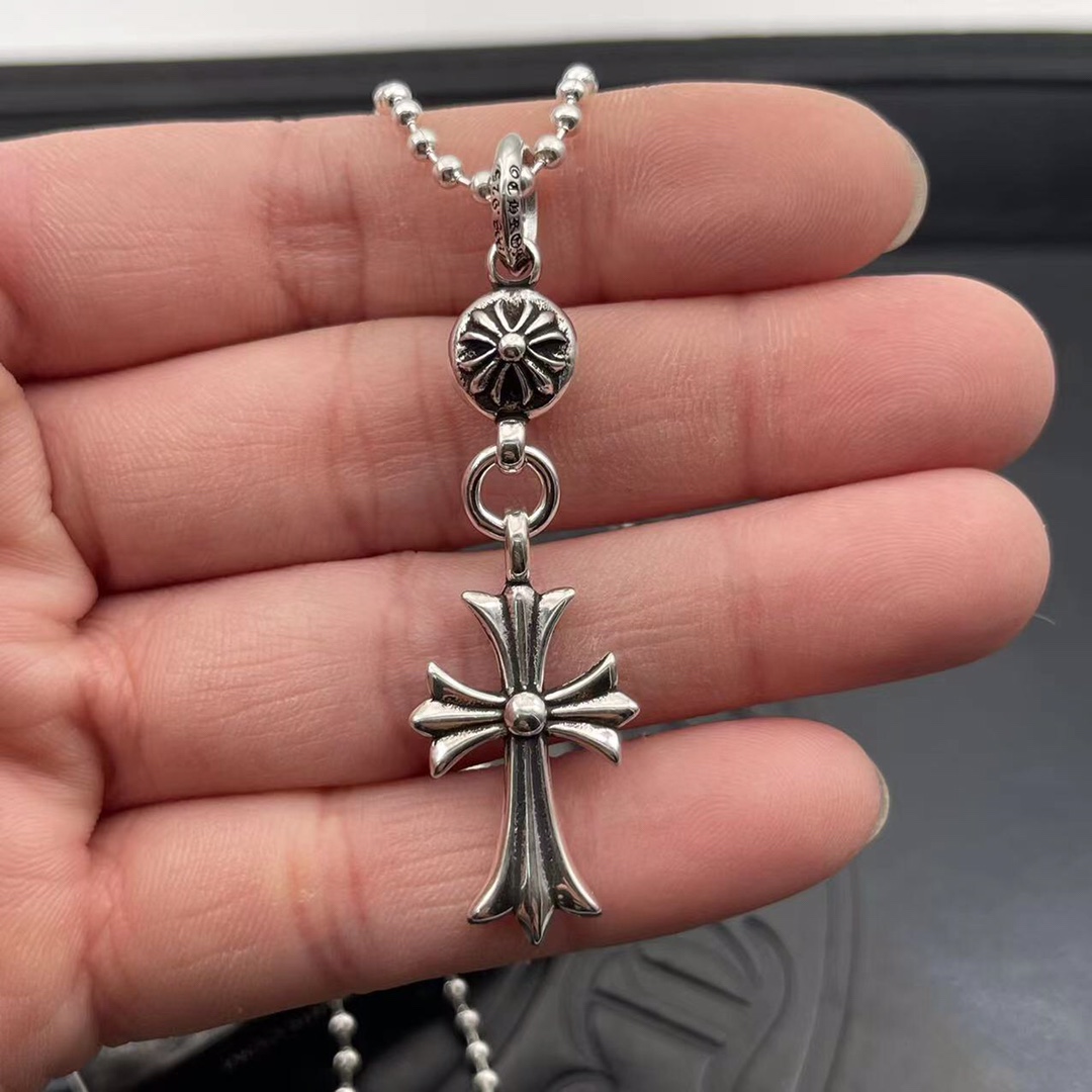 High version of Kroger classic Necklace, single ball cross pendant with beaded chain, Necklaces/Necklace