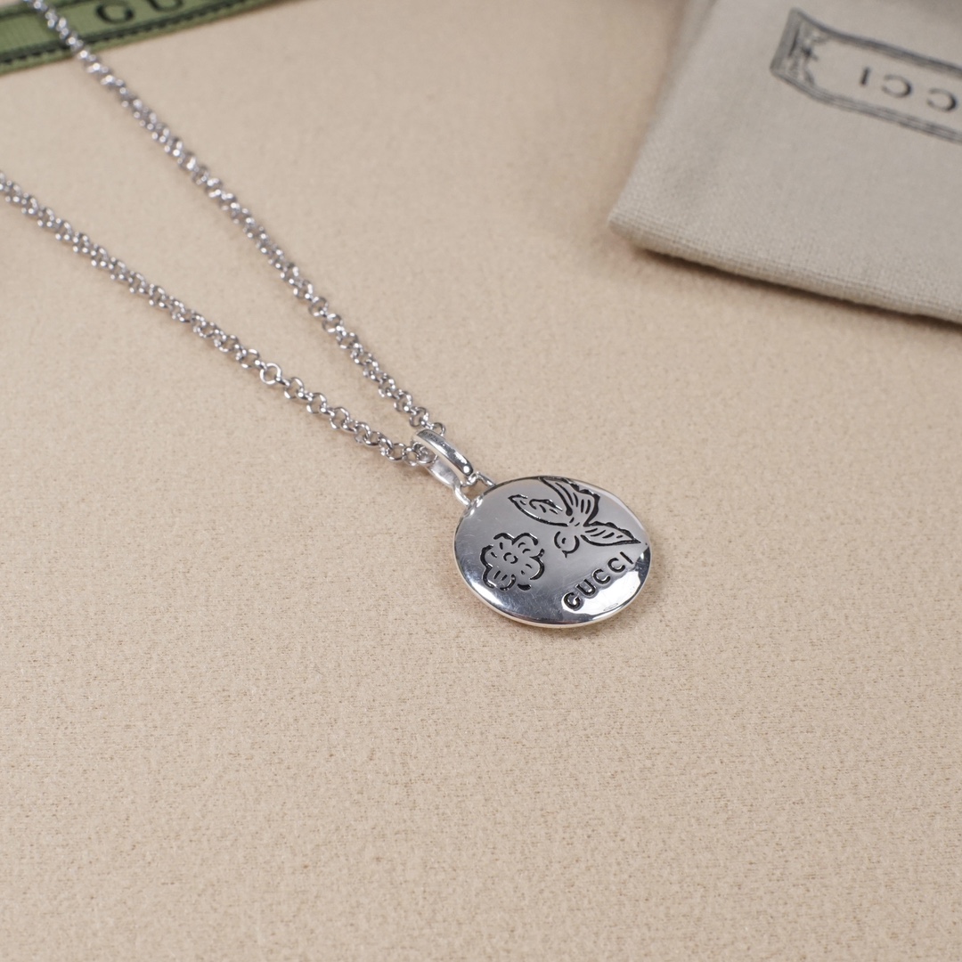 gucci flower-and-bird round/heart-shaped necklace The Blind for love Fearless series is highly recommended. It features pure silver engraved flower and bird designs, letters on the back, and an eternal classic work Necklace LACES /Necklace