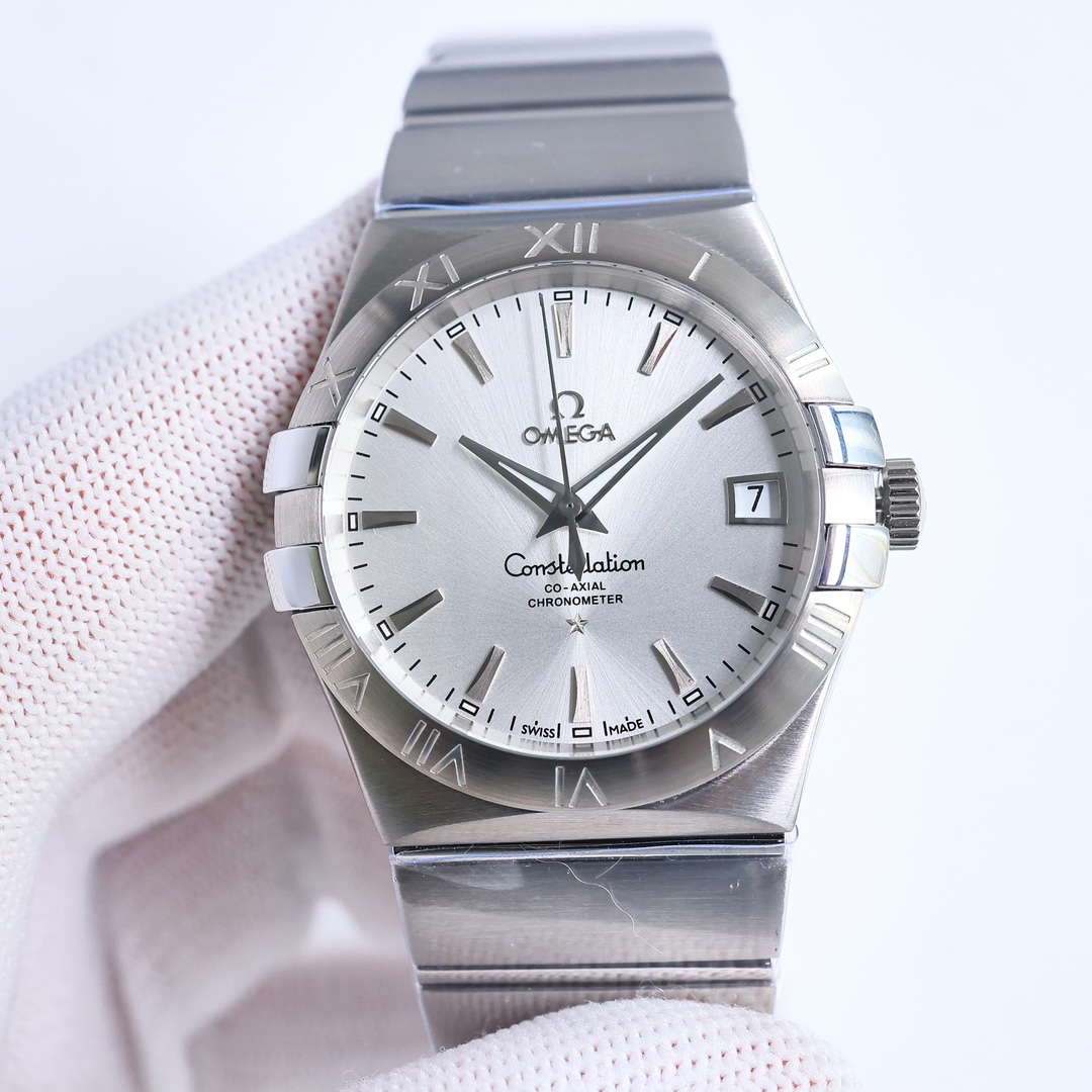 OMEGA Constellation 38mm ??GR2 market top-of-the-line black windmill balance wheel The 38mm Omega fourth-generation Constellation men's streetwear watch brings the Constellation series to life 1 ? Case: The timeless and charming design is reflected in the classic half-moon-shaped facets on both sides of the case and the "claws" 2 ? Bezel: engraved Roman numeral hour markers 3 ? Literal: Sunray dial with three-dimensional multi-sided waist drum-shaped polishing and brushed finish, distinct scale bars ?? 4 ? Hands: The three-dimensional multi-faceted polishing and brushing process gives the hands a multi-angle beauty 5 ? Movement: Replica 8500 black windmill balance wheel, deck gemstones slightly convex and full, giving the movement more stable performance A wristwatch suitable for formal occasions can help you handle the workplace and social interactions with ease. Paired with formal wear and casual wear, it fully showcases your masculine charm! ??S1 Exquisite recommended mechanical watch for men