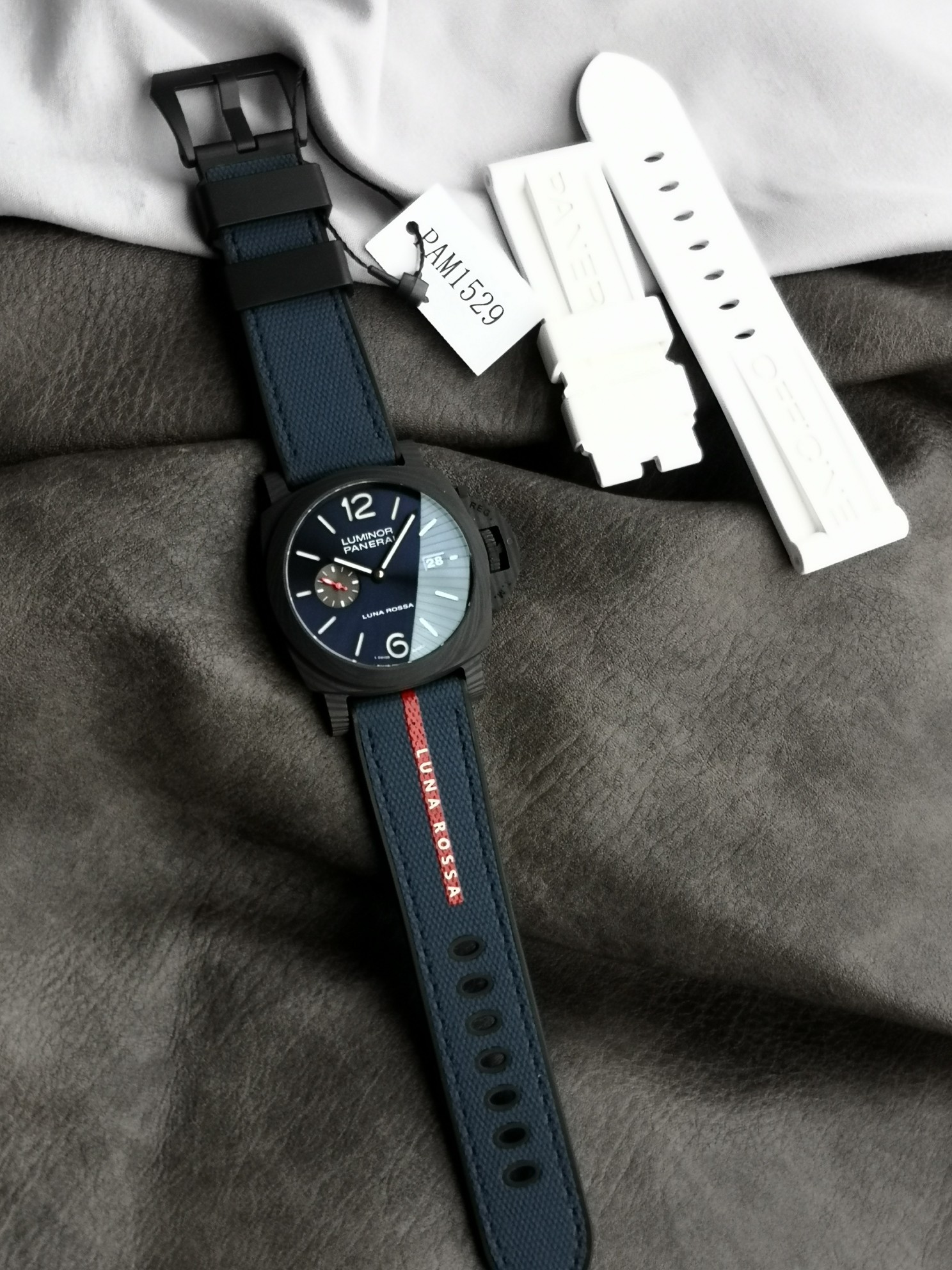 VS?? Fresh fruit recommendation: Panerai Luminodur PAM01529, Carbotech? carbon fiber case with Luna Rossa fabric and rubber strap, Carbotech? carbon fiber bezel, sapphire crystal glass. Blue sunray dial, luminous Arabic numerals and hour markers; A date window is set at 3 o 'clock and a small seconds dial is set at 9 o 'clock. Equipped with Cal.P.9010 automatic mechanical movement, size: 44 mm. ??