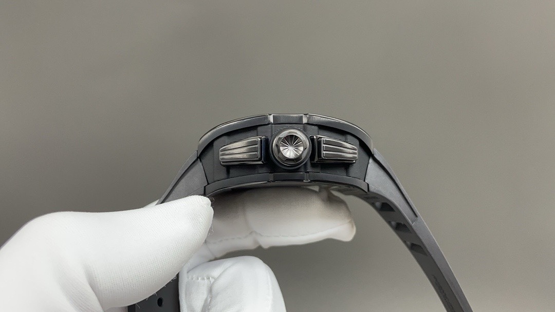 ???? [RICHARD MILLE] RM011-FM collection, made of stainless steel, perfectly fits the ergonomic design of the brand 's iconic buildings that pursue perfection. Every component of RM 011 is an aesthetic expression of its function. The RM011-FM watch retains the most recognizable signature shape, but the craftsmanship it employs still far exceeds that of the past. For the case part, the titanium version shown in the picture is available, but there are also rose gold and titanium versions to choose from. However, no matter which one it is, they both have a finely crafted brushed surface, which, when paired with polished chamfers, presents a sharp contrast. Equipped with the 7750 chronograph mechanical movement and clearly marked functional fonts (Start/Stop and Reset/ Flyback), its design inspiration comes from the pedals in F1 racing cars. All these optimization changes have made this RM 11-FM flyback chronograph automatic wristwatch more sporty and trendy than previous models