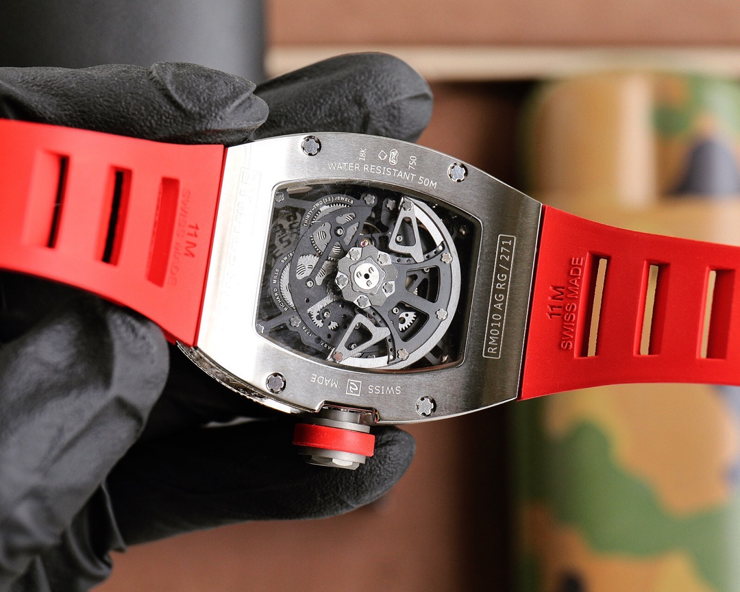 ?? Richard Mille RM010 New craftsmanship fashion more avant-garde skeletonized design latest special mineral scratch-resistant mirror glass 316L stainless steel case durable natural imported rubber strap automatic imported mechanical movement size: 49