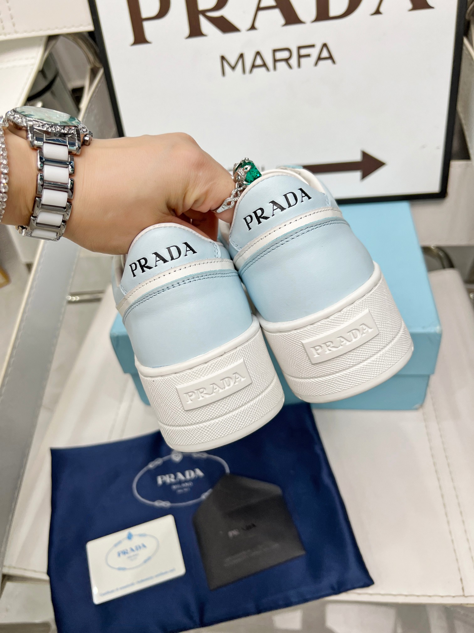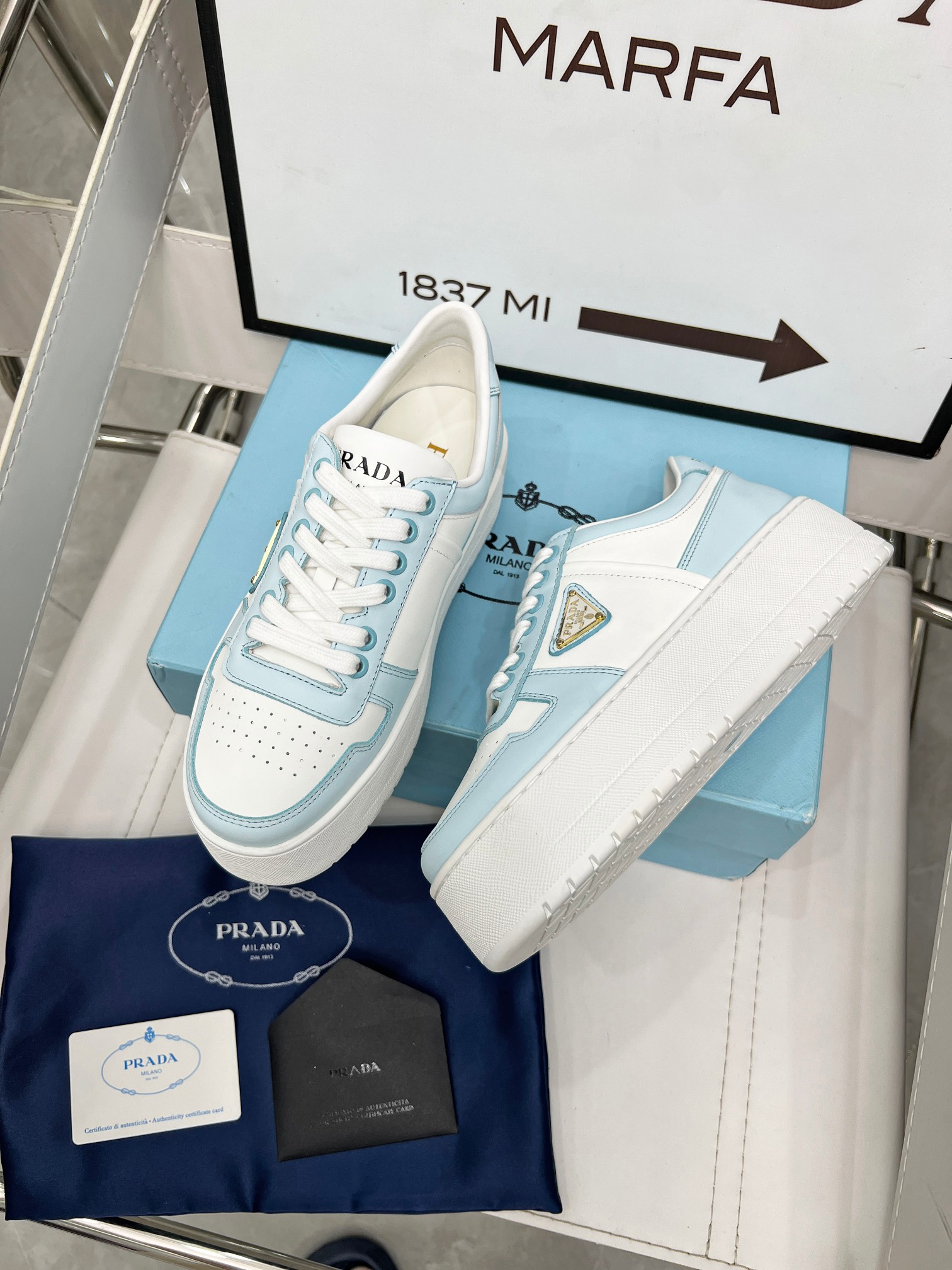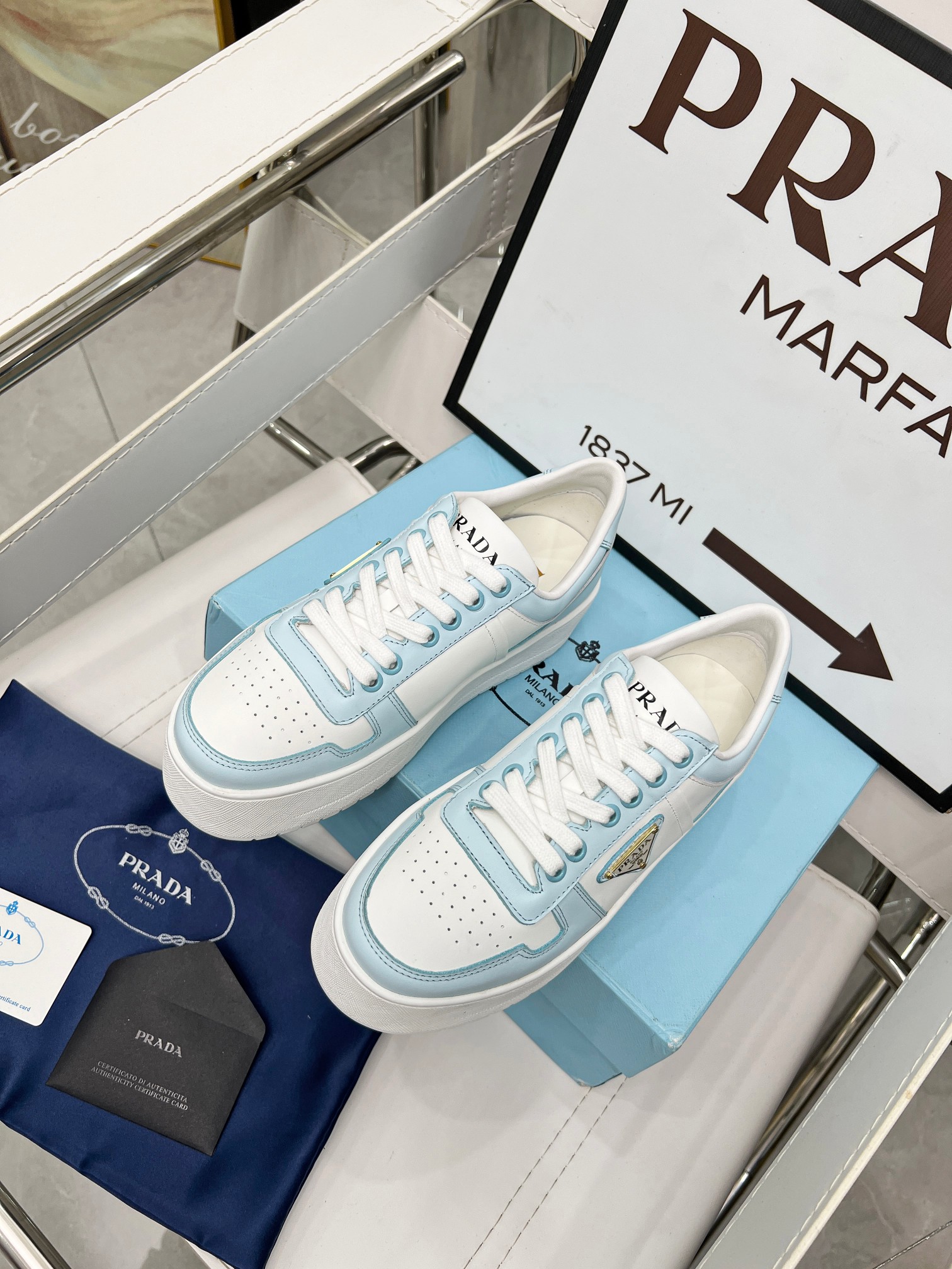 ???? Prada Prada "Panda color" thick soles white sneakers Casual sneakers This sneaker continues the timeless silhouette and elevates the style with a light design, featuring a triangular buckle logo and a 5CM thick sole Suitable for all seasons, it can be paired with various casual looks. In an era when all kinds of styles are eye-catching, the white sneakers are the ones that can last the longest and gradually capture people's hearts. Leather material: Original edge-cut beads + calfskin combination Inside: Inside the sheepskin Shoe label: Enamel-coated triangular metal logo Size :34-41