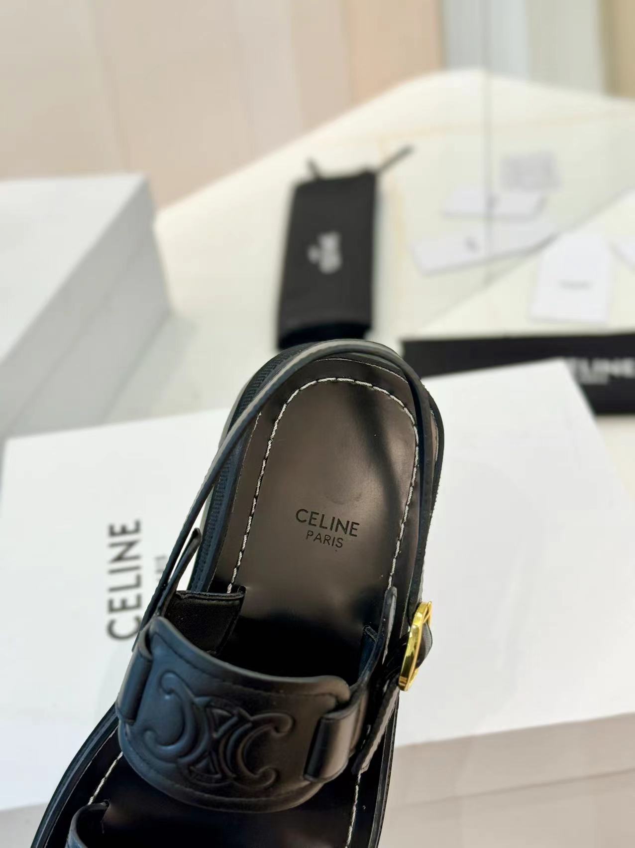 ?? ?? Celine | Celine 24ss Spring/Summer New Arc de Triomphe Beach Sandals ??? Go? Material: imported tire cowhide lining is cowhide original calf tendon outsole ? Genuine leather edge original mold metal buckle size: 35-40